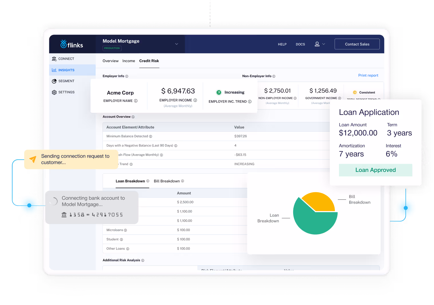 For customers who aren’t API-ready, Flinks provides a no-code, intuitive dashboard to explore financial insights without the need for engineering resources or complex integrations.