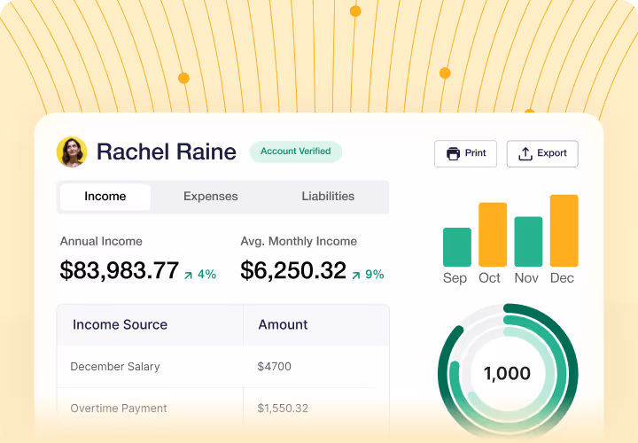 Turn raw data into 4,500+ real-time attributes covering transactions, income, cash flow trends, liabilities, NSF, overdrafts, loan stacking, and more.