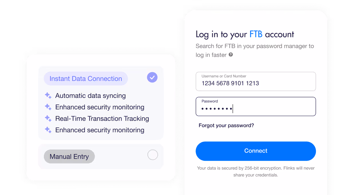 Connecter votre banque via Flinks aide les fournisseurs de services financiers à accéder de façon sécuritaire à vos informations financières avec votre consentement explicite. C’est une façon plus rapide et sécuritaire de partager vos données, leur donnant une vue plus claire de votre situation financière tout en minimisant les étapes supplémentaires.
