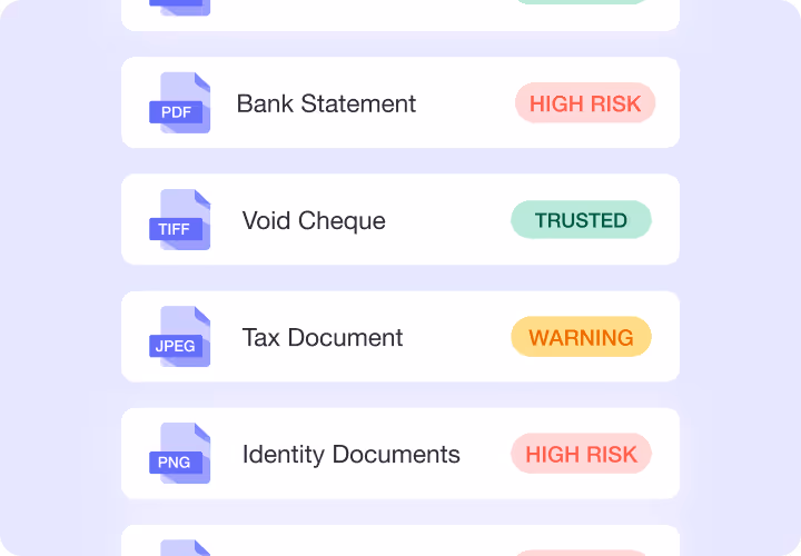 Use OCR and AI-powered fraud detection to extract and verify data from bank statements and void cheques. Catch up to 3x more document fraud, automate verification, and improve decision accuracy.