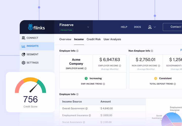 For customers who aren’t API-ready, Flinks provides a no-code, intuitive dashboard to explore financial insights without the need for engineering resources or complex integrations.