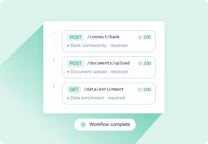 Integrate Flinks into your onboarding stack with APIs for bank connectivity, document upload, and data enrichment. Build end-to-end workflows that reduce friction, automate decisioning, and scale with your business.